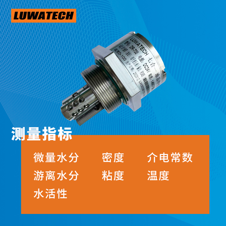 DR-700七参数油品特性传感器,集油品微量水分,游离水分,粘度,密度,介电常数,水分活度,温度多达七种参量于一身。